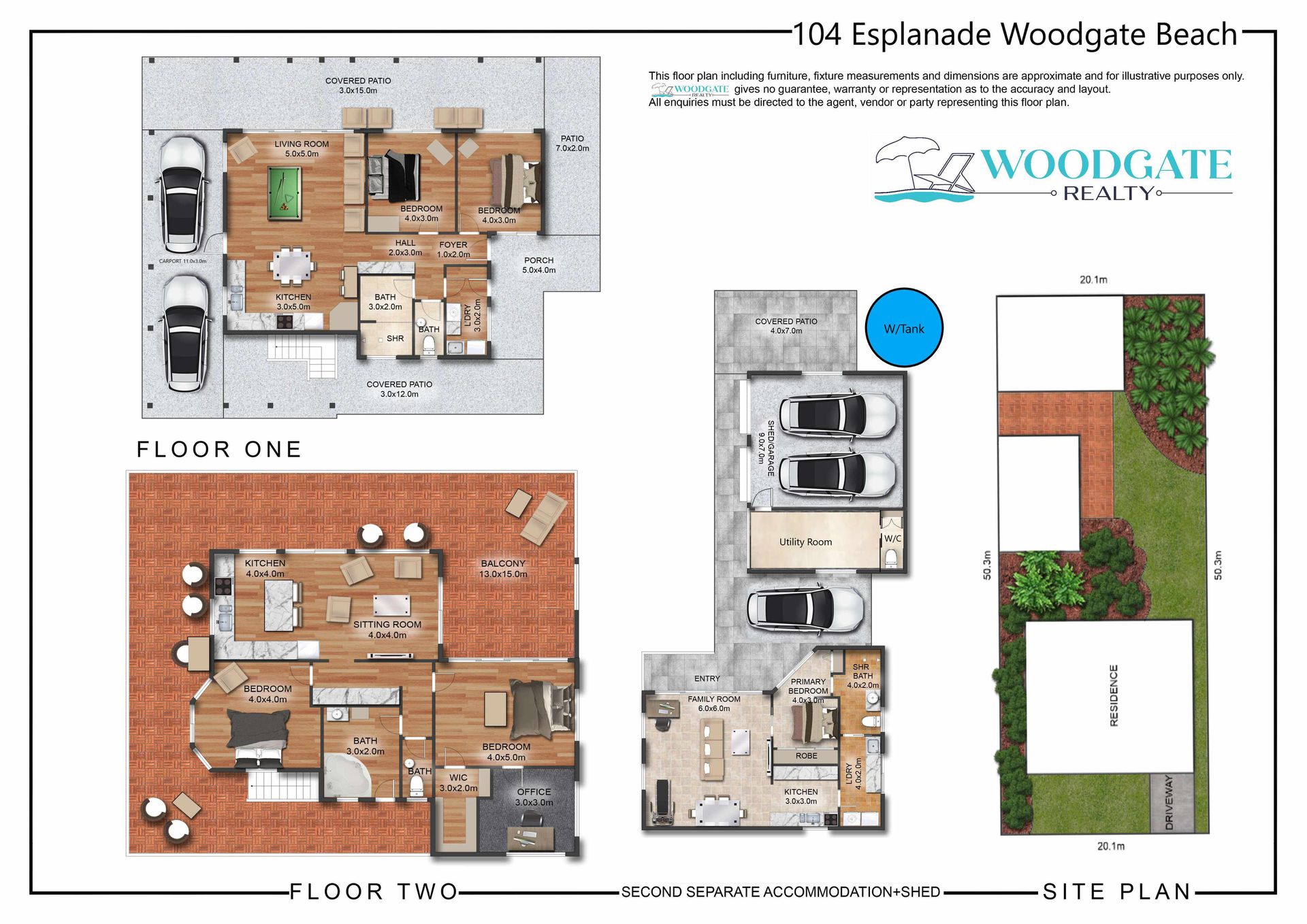 • Two-storey main home with four bedrooms, two bathrooms and two full kitchens