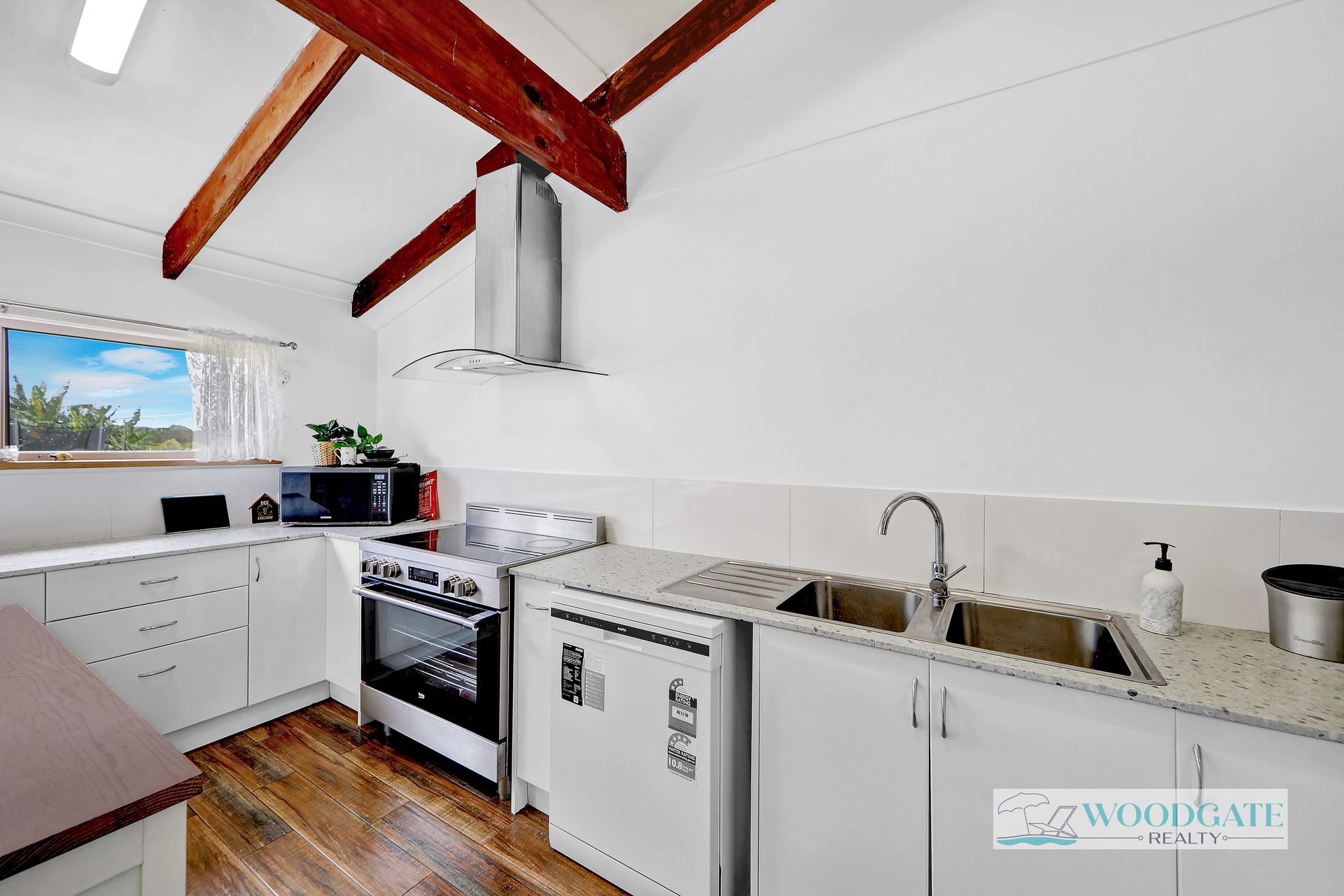• Renovated home with vaulted ceilings and exposed timber beams
