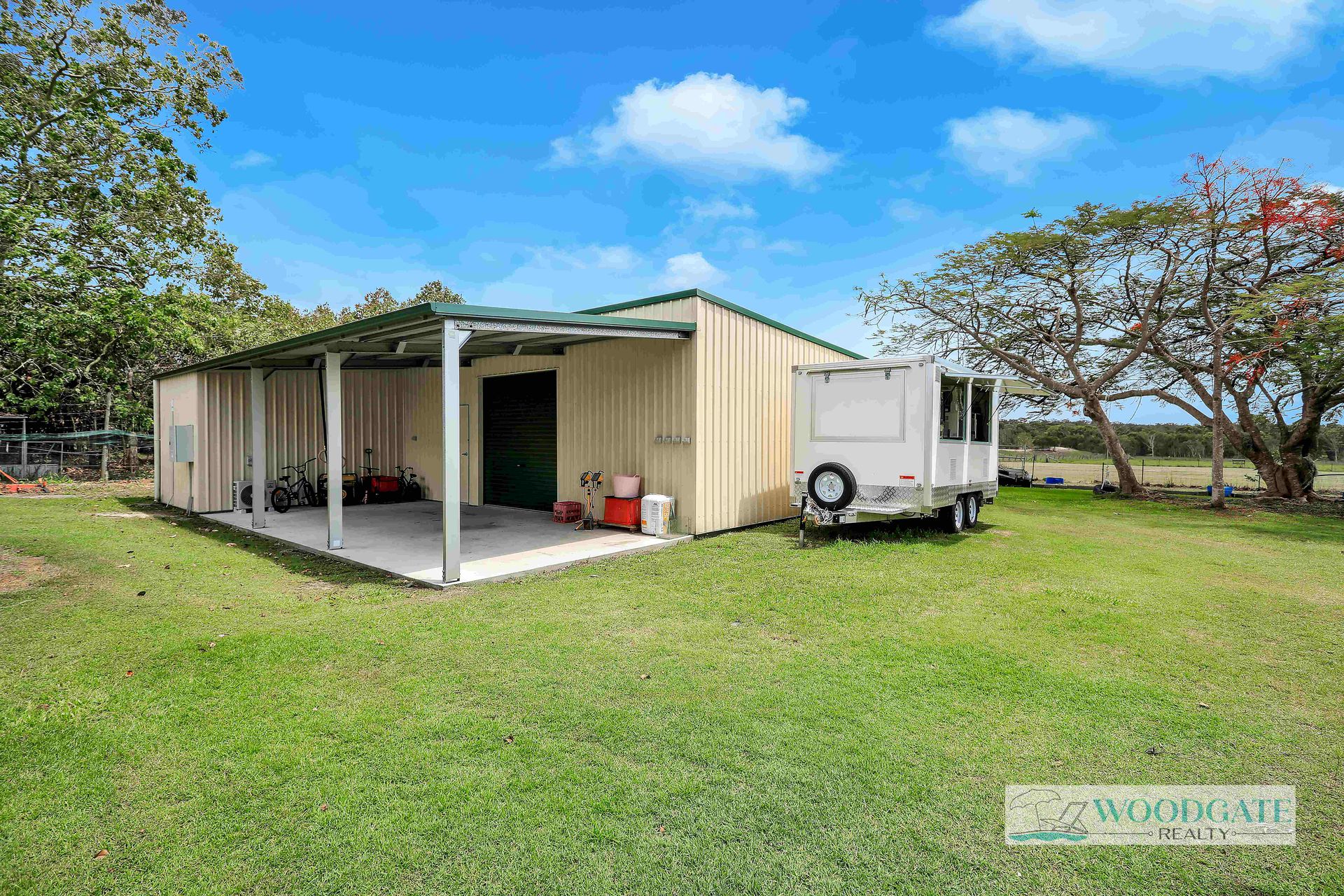 Near-new Ranbuild shed with air-conditioned utility room for honey storage
