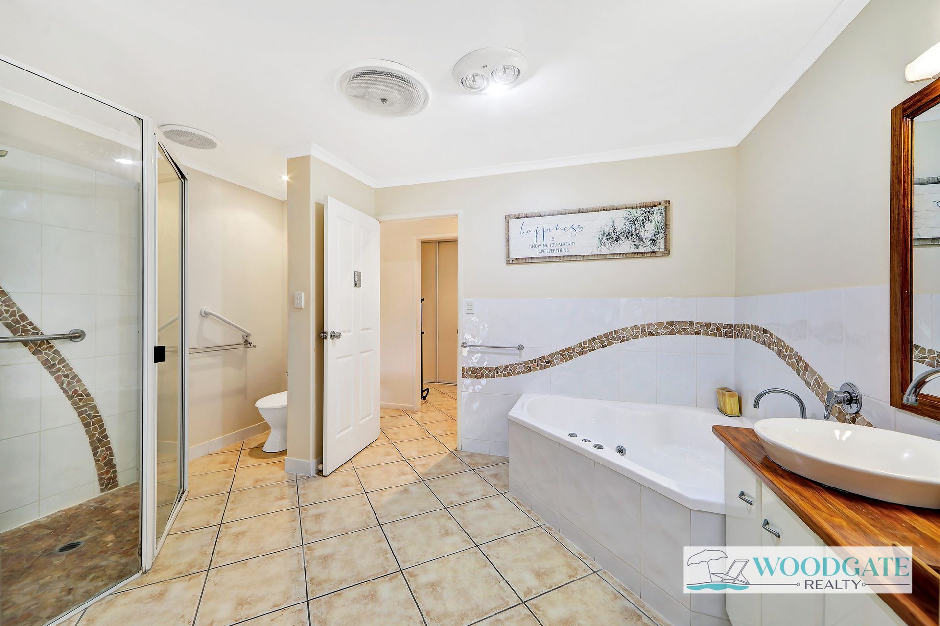 - Unique open ensuite design with spa bath and separate shower