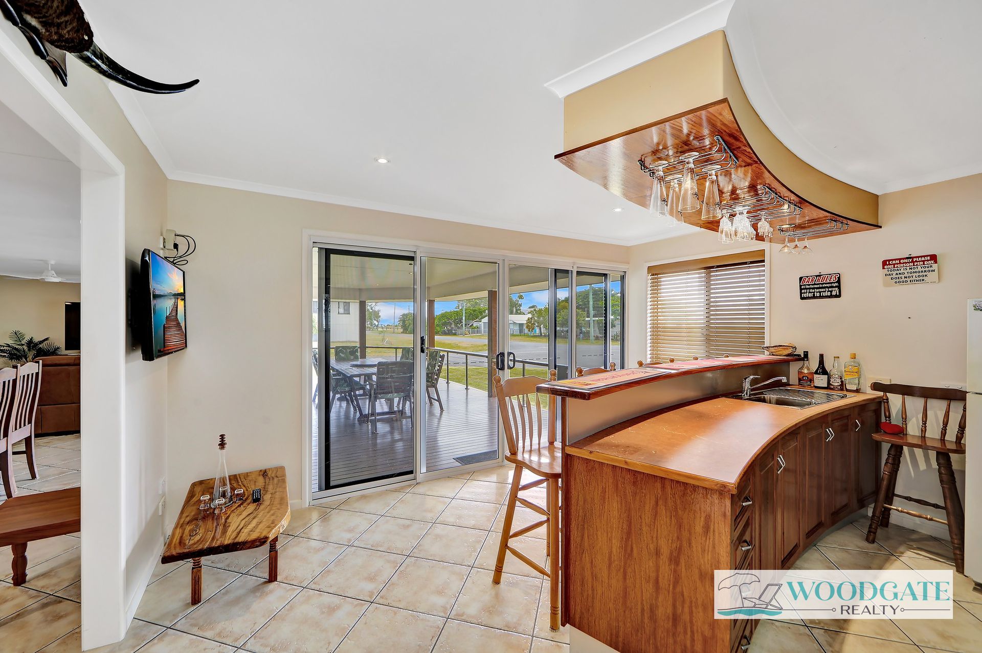 • Seamless indoor/outdoor flow to the deck and bar area