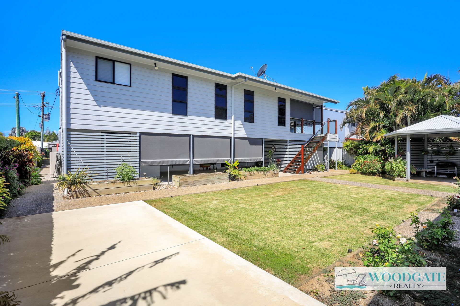 Be prepared to fall in love with this sophisticated coastal entertainer just metres from Woodgate Beach. Boasting two fully equipped kitchens, three bathrooms, two living zones, a 3-person lift, full air-conditioning, and a huge powered 4-bay shed, this home is perfect for families, investors, or anyone wanting resort-style living. Set on a level 811m² fully fenced block with rear access, landscaped gardens, gazebo and plenty of space for cars, boats and caravans, it’s a rare find in a sought-after street.