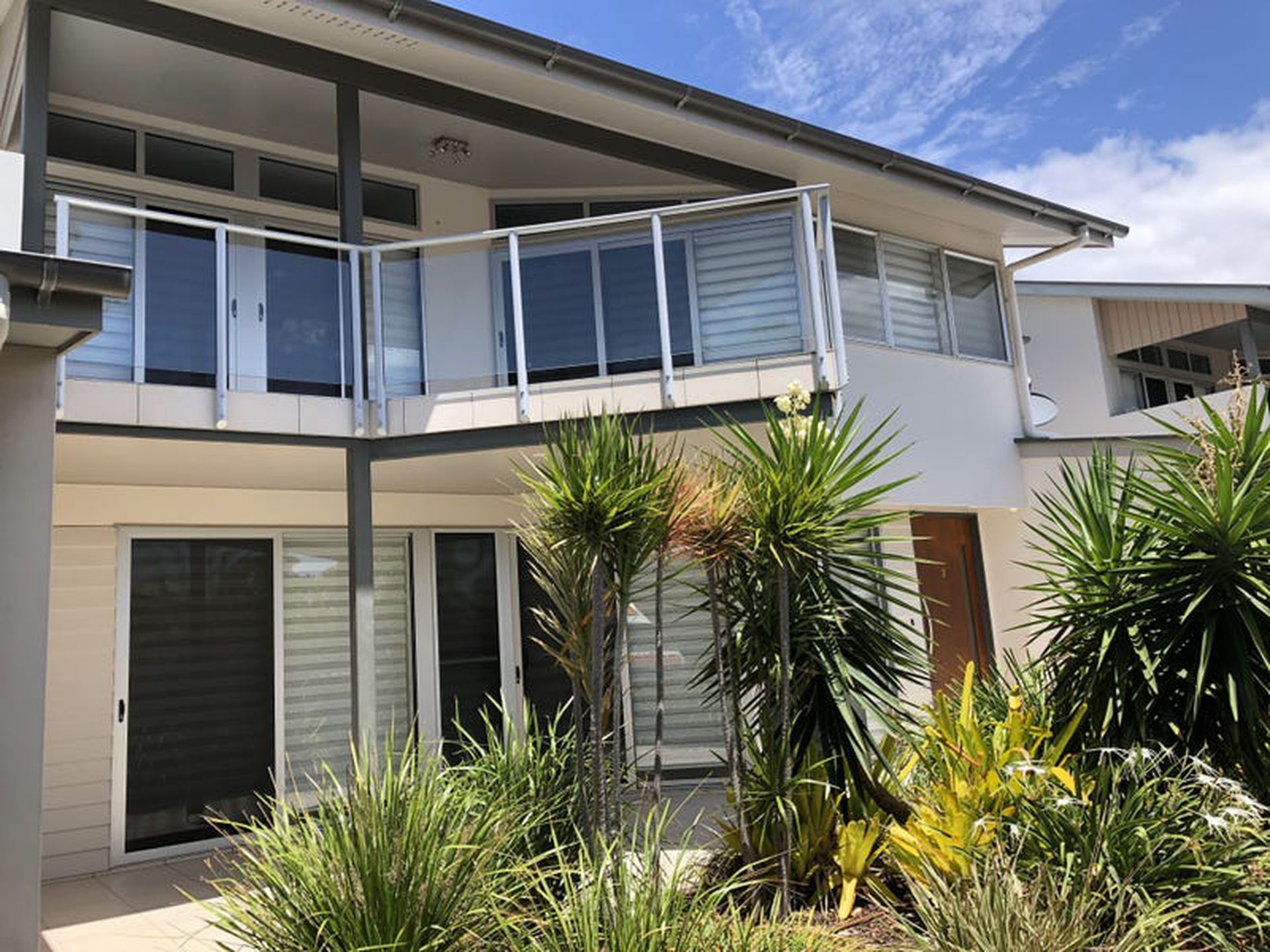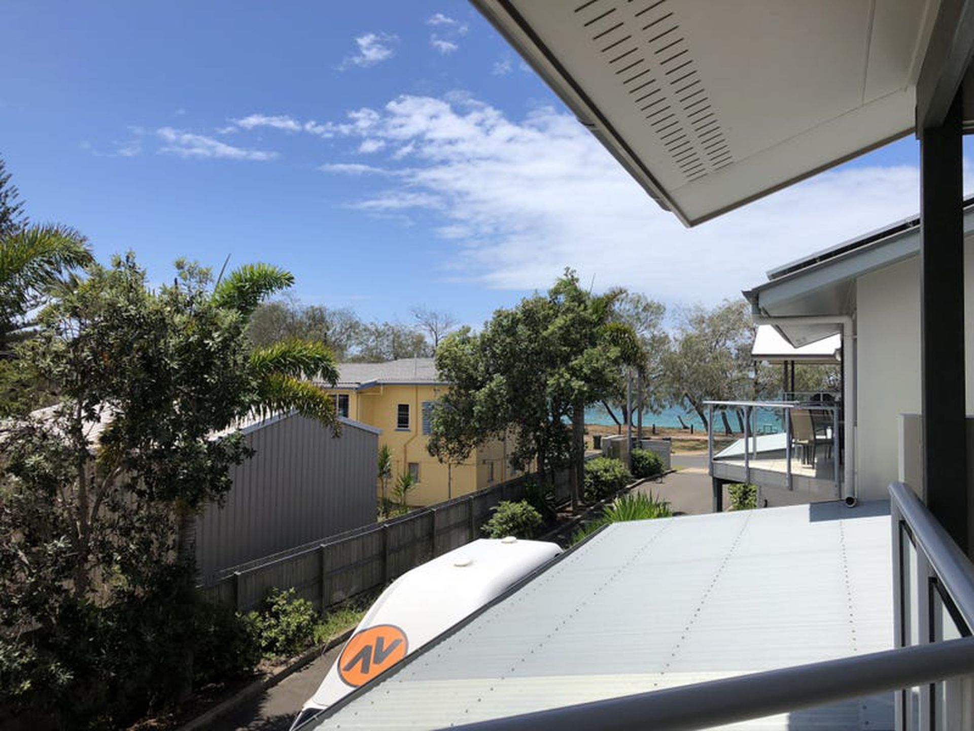 * Fully screened tripple sliding doors opening onto huge entertaining deck with beautiful ocean views of beach just across the road.